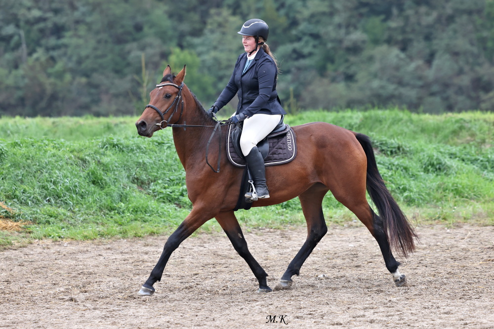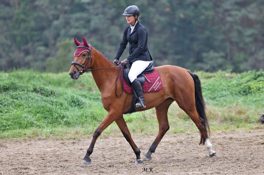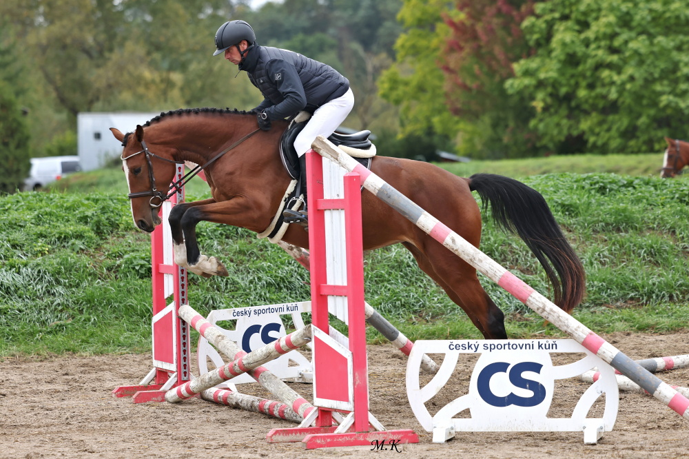 První říjnový víkend patřil netradičně skokovému MČR v Martinicích. Při něm nechyběla divácky oblíbená soutěž družstev, kterých se sjelo do Martinic celkem 16. Do druhého kola postupovalo 10 z nich. Bez trestných bodů prošlo rovněž tříčlenné družstvo Plzeňské oblasti, za které startoval valach Eliott s Danielem Pospěchem, reprezentující stáj Koně Pernarec manželů Hanákových. Ryzák Eliott (Ebab RK, Carlott po Colonel) podal bezchybný výsledek i v druhém kole a pomohl družstvu Plzeňské oblasti k zisku bronzové medaile. Valach pochází z chovu Jana Třísky v Luhově. Narodil se po bělouši Ebab RK, kterého v soutěžích KMK jezdila Jana Stébelská a Ondřej Nágr. S výkonností S* byl prodán do zahraničí a ještě před odjezdem vykastrován. V barvách Kanady (Stevie Murphy) dosáhl výkonnosti 155 cm. Ebab RK má ve sportu aktuálně 6 startujících potomků, nejlepším je právě sedmiletý Eliott s výkonností ST*. Matka Eliotta, klisna 80/843 Carlott v letošní sezoně absolvovala pod jezdkyní Kateřinou Deverovou úrovně ST*. Sama pochází z velmi dobré rodiny, výkonnost ST prokázala její matka 26/62 Motiva II po Atlas i bába 26/516 Motiva po Marobud. Narodila se po hřebci Colonel, který působil v Mariánských Lázních, stejně jako už zmíněný Atlas. Holštýnský Colonel prošel seriálem KMK s O.Nágrem a následně byl prodán do zahraničí. Pod jezdkyní Nicolettou Stein dosáhl výkonnosti 140 cm.