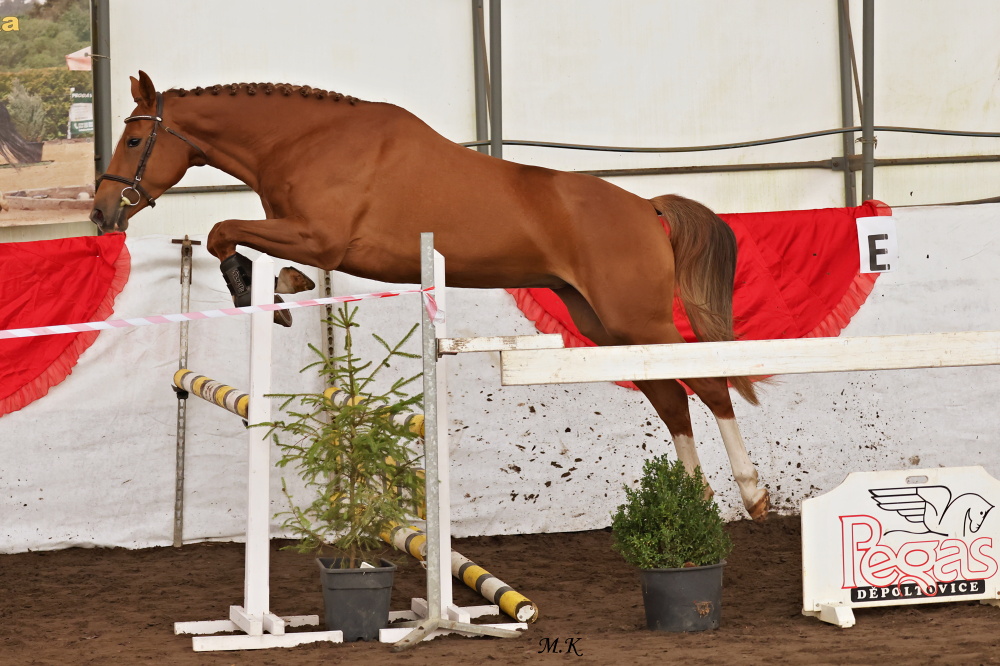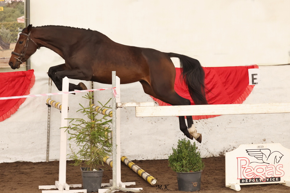 6. SBS MUGÁNO NOVOJICKÝ HF (Lector van den Bisschop x Federweisser x Radegast) chovatelky a majitelky Jany Lošákové. Belgický Lector van den Bisschop je prochovaný na dlouholetou světovou skokovou jedničku Darco a jeho mateřským otcem je rovněž sportovní a chovatelská jednička For Pleasure.