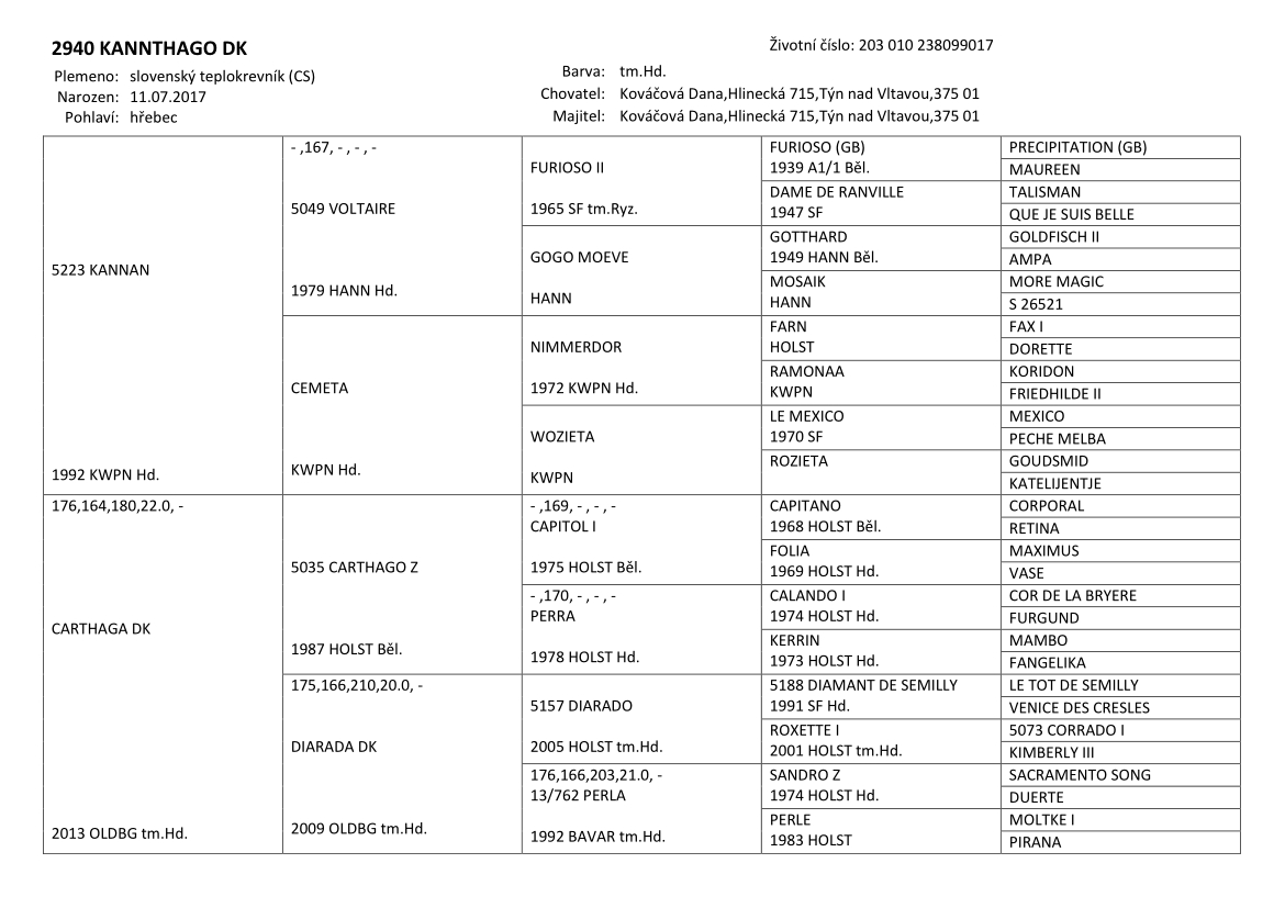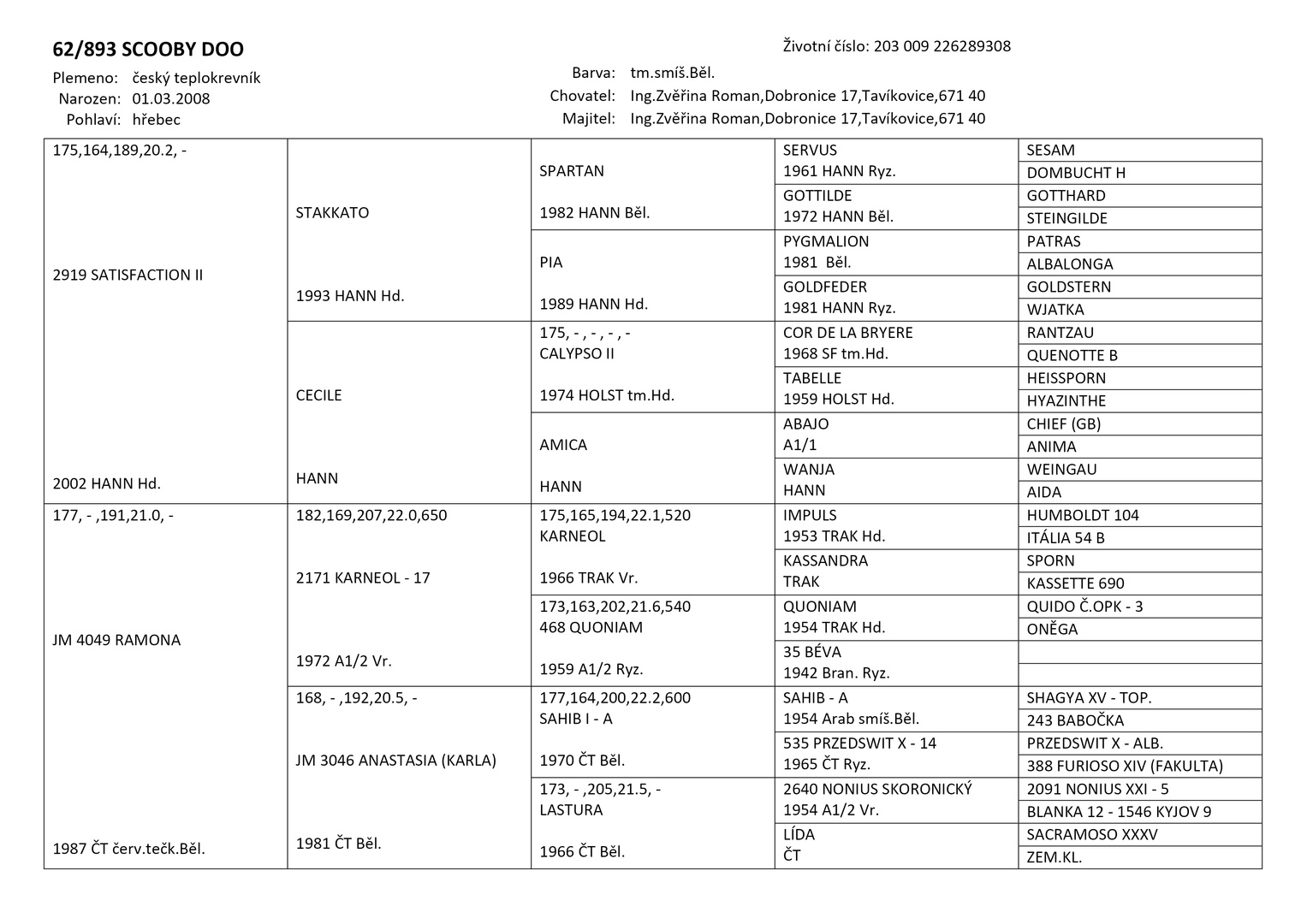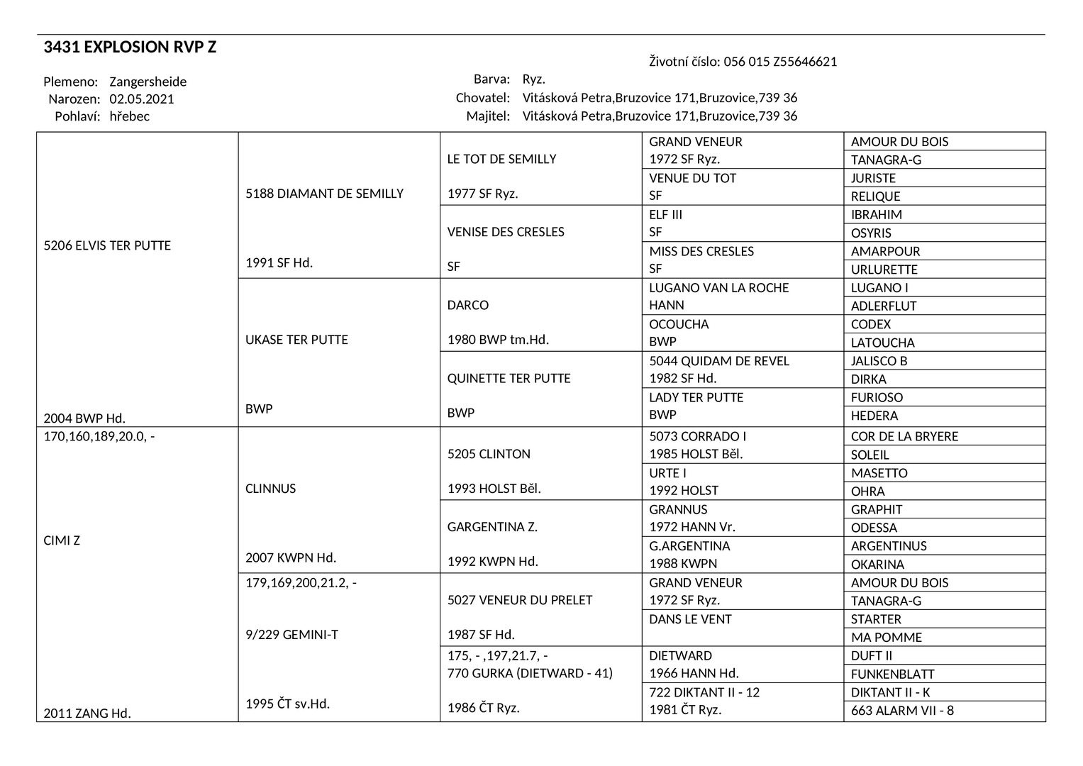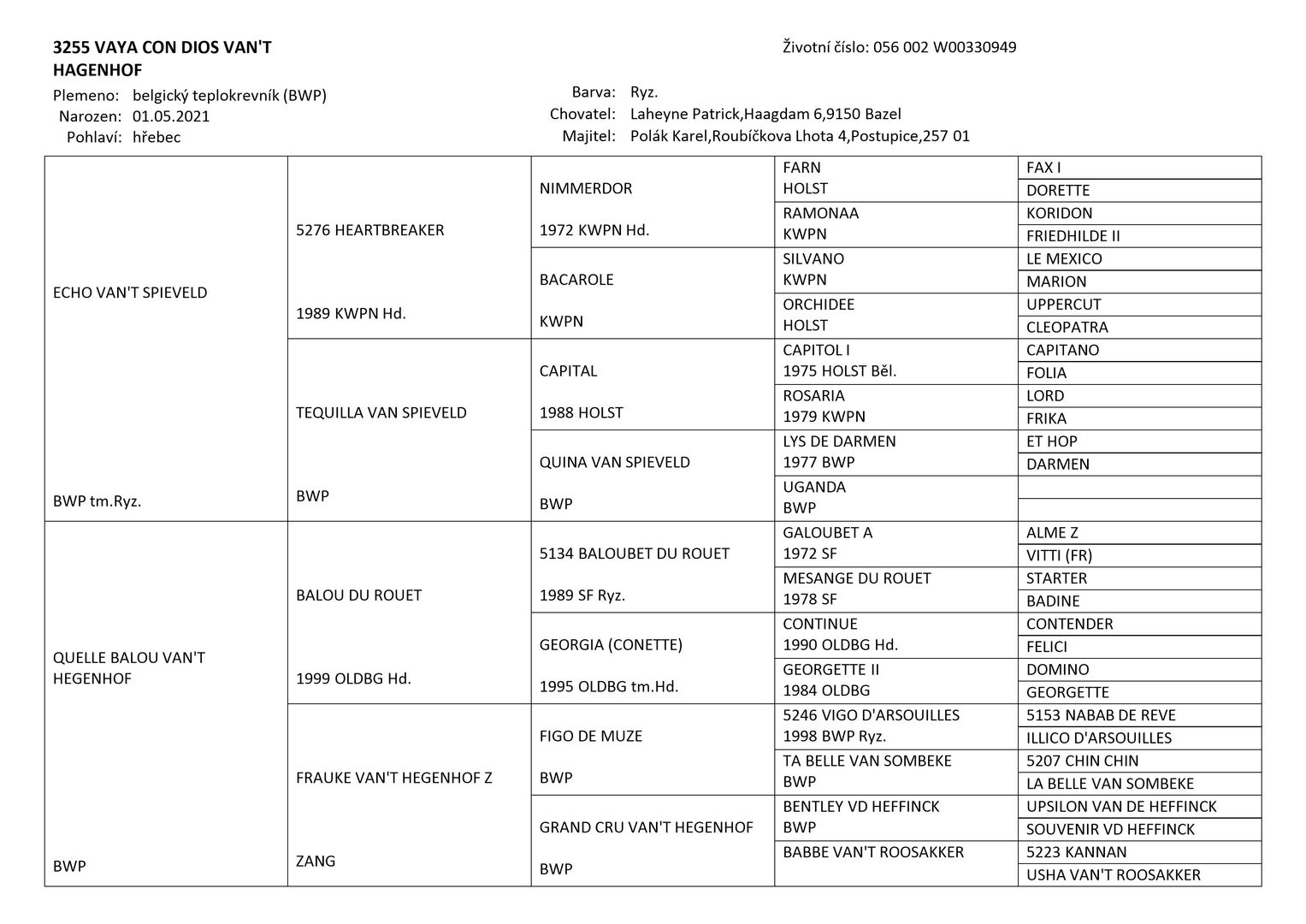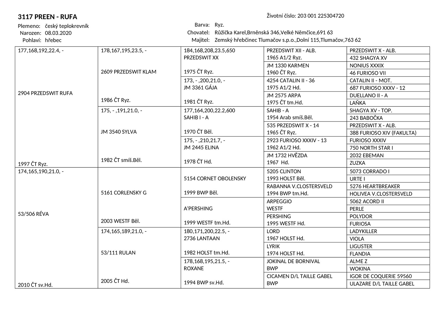 Chovatel : Ing.Mayer Jiří,Ohrazenice 2,Volenice,387 16