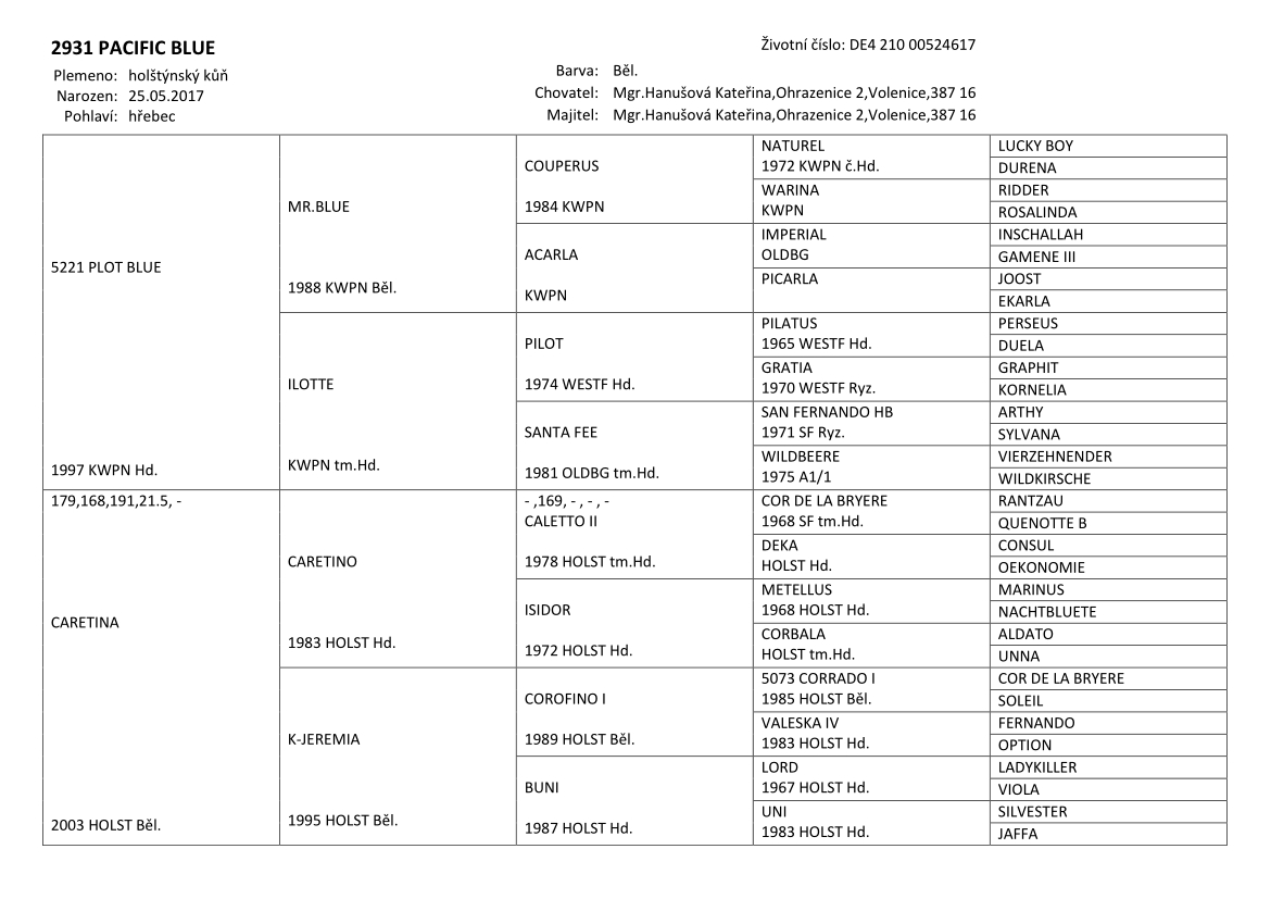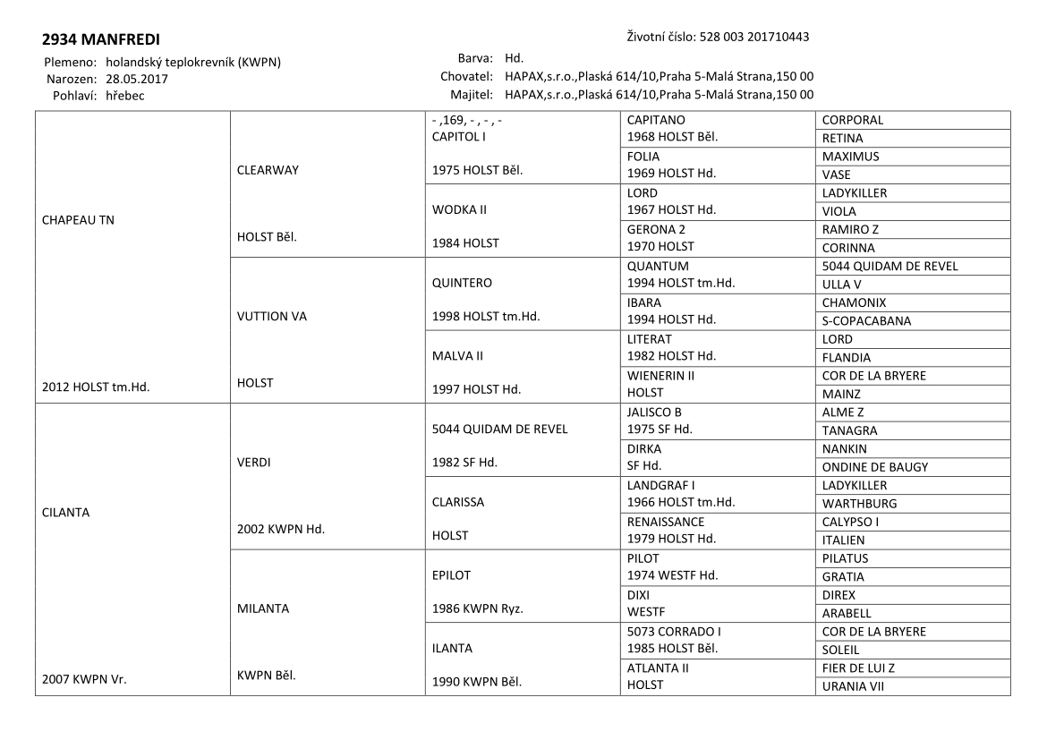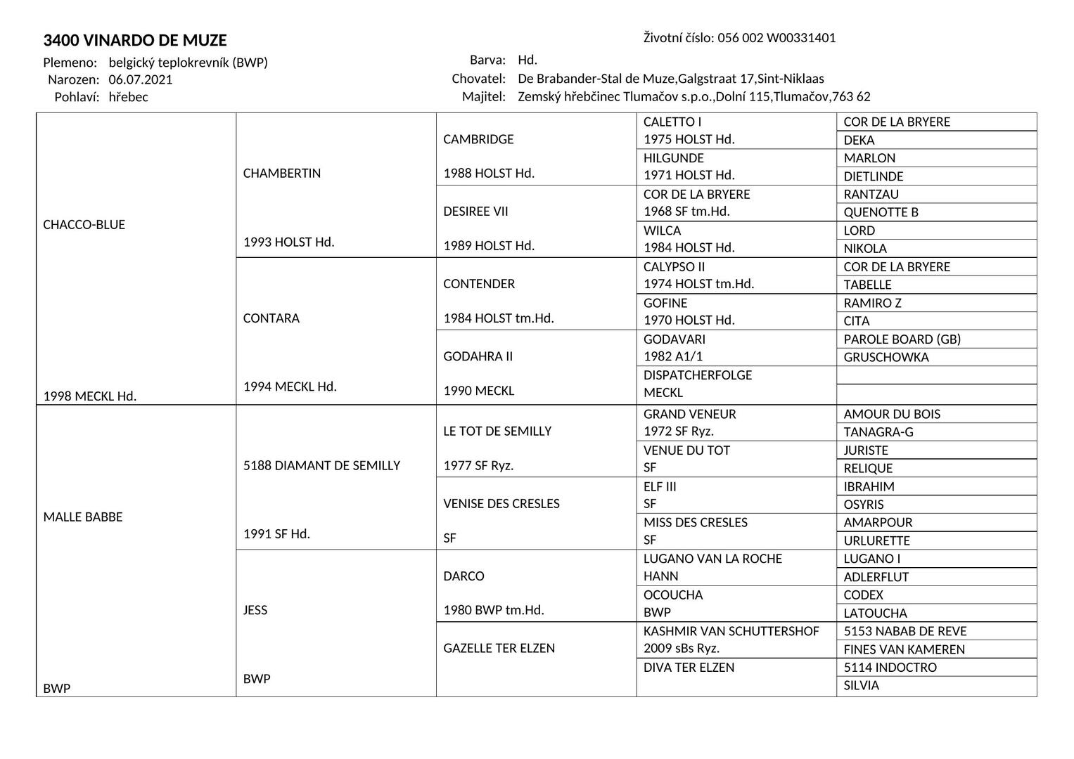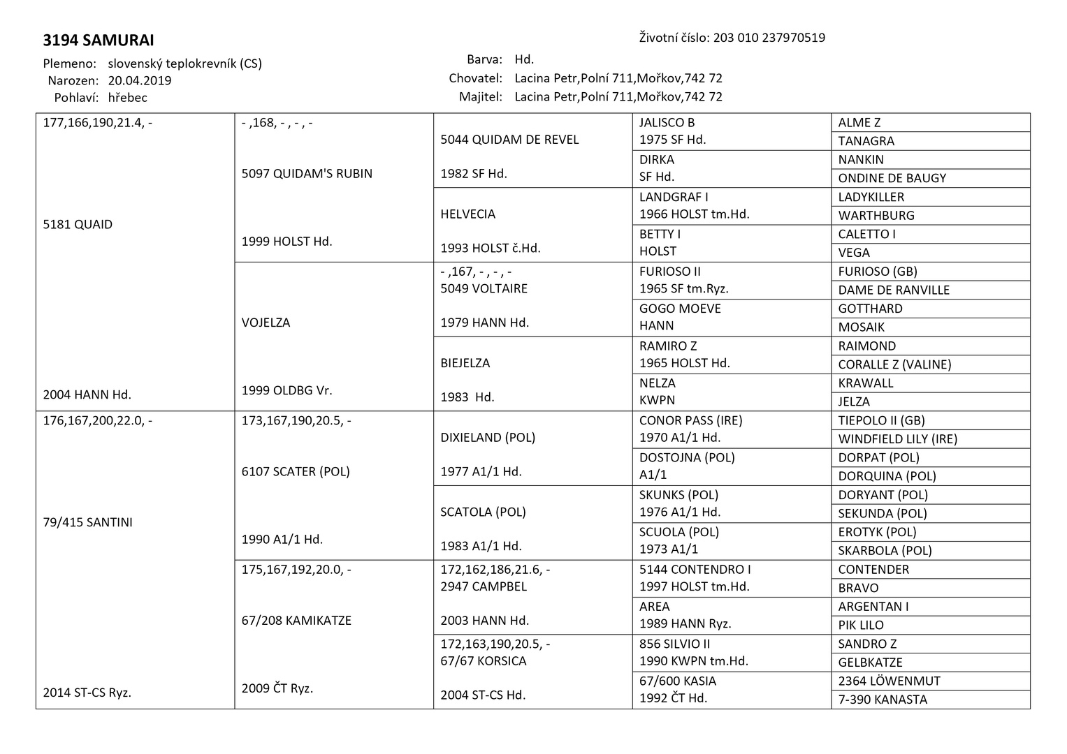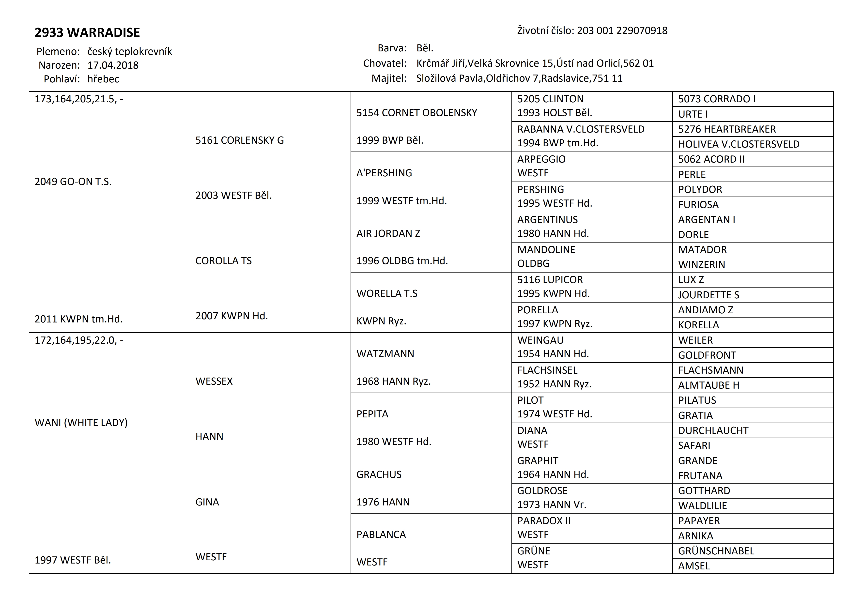 Chovatel : Ing.Mayer Jiří,Ohrazenice 2,Volenice,387 16