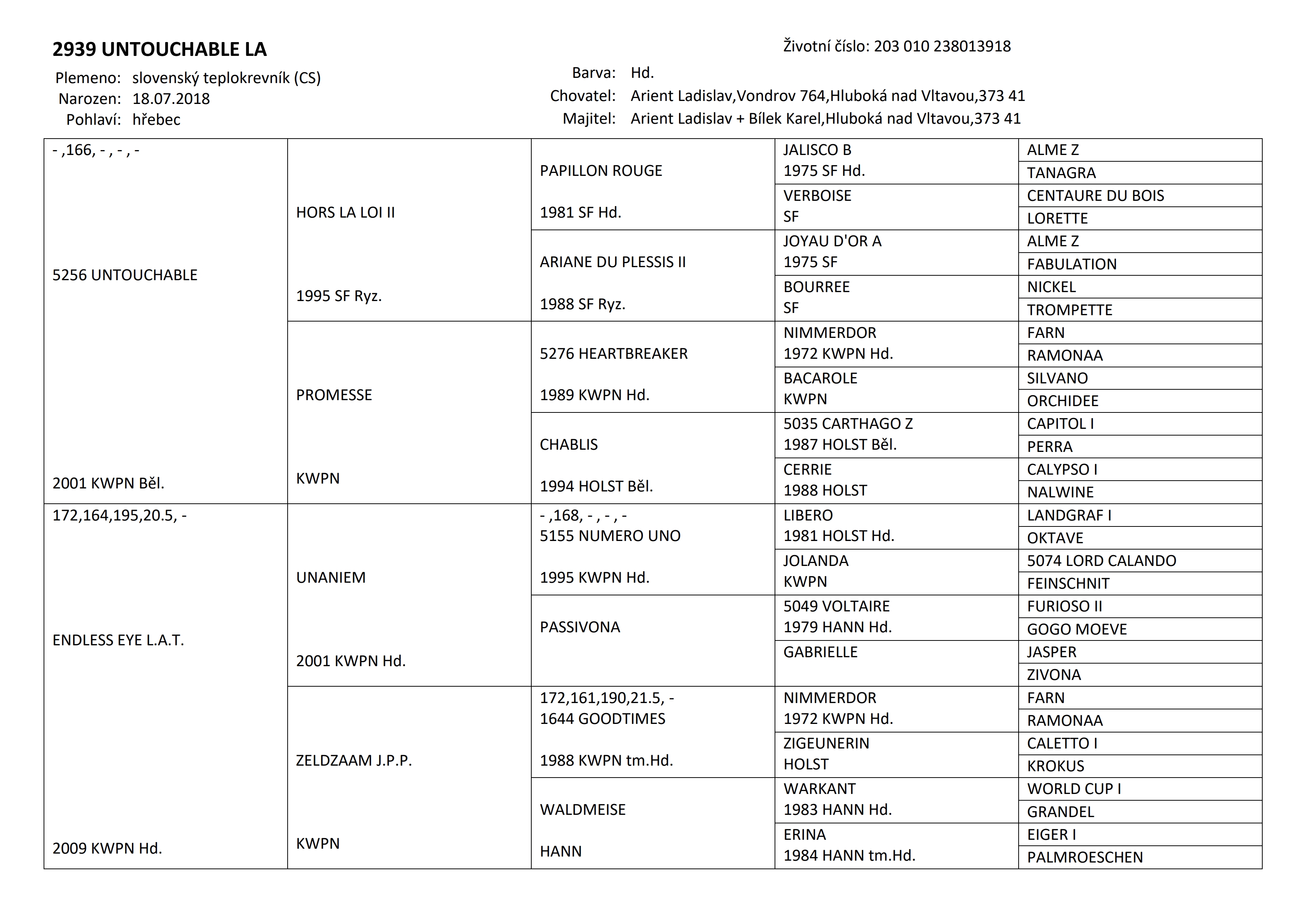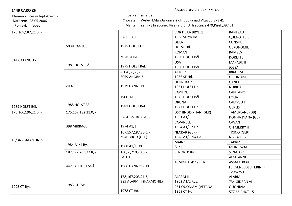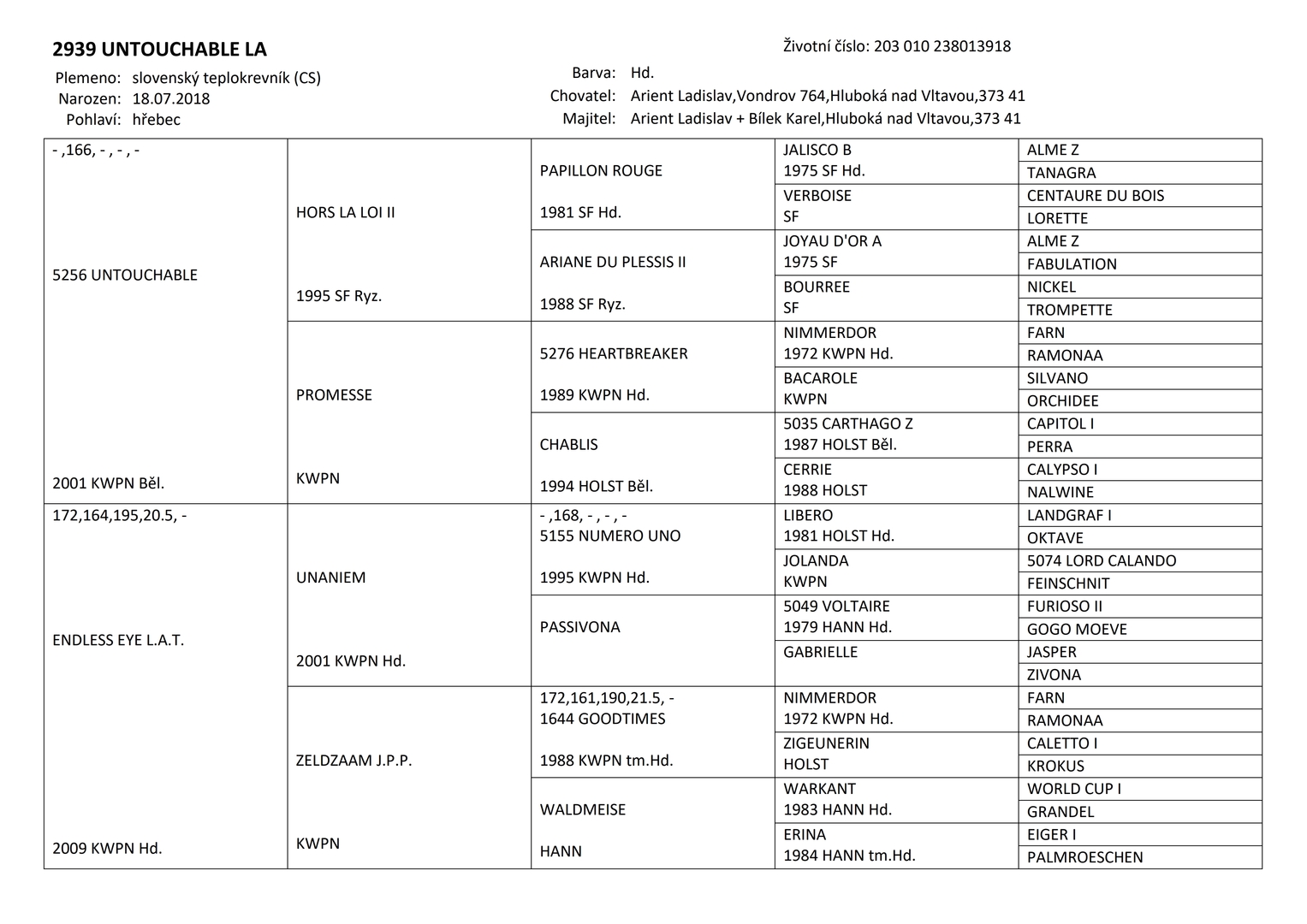 Chovatel : Areint Ladislav, Vondrov 764, Hluboká nad Vltavou,373 01