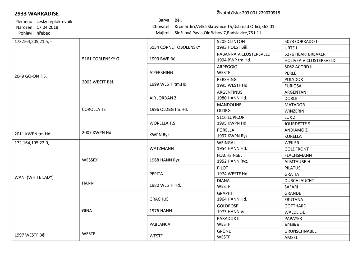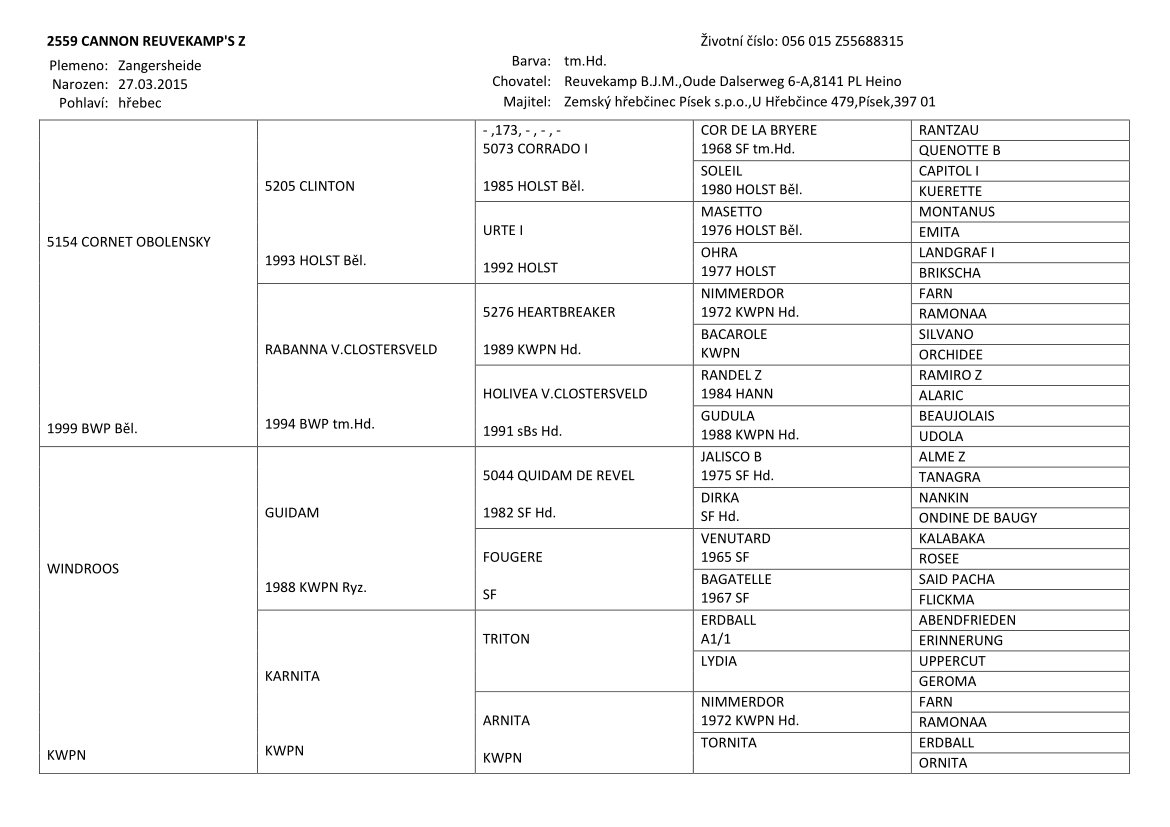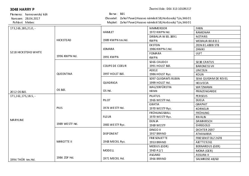 174,164,192,20.5, - Fat Cat 2010 KWPN smíš.Běl. | Cornet Obolensky 1999 BWP Běl. | Clinton 1993 HOLST Běl. | Corrado I |