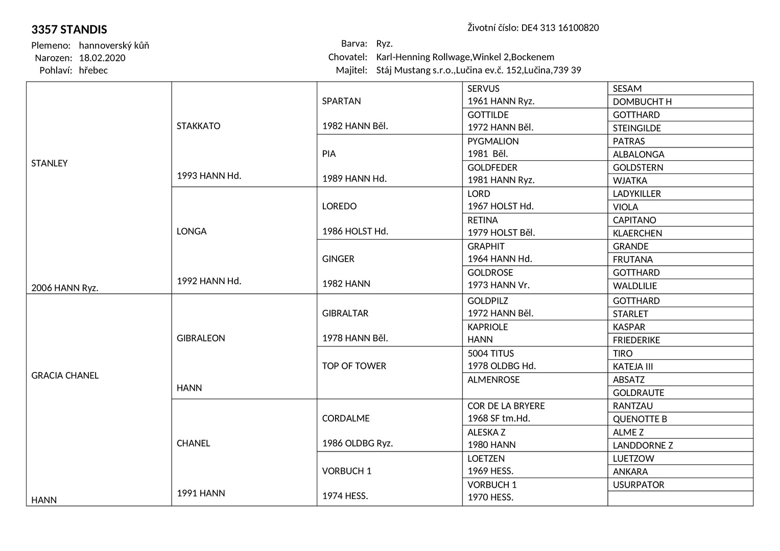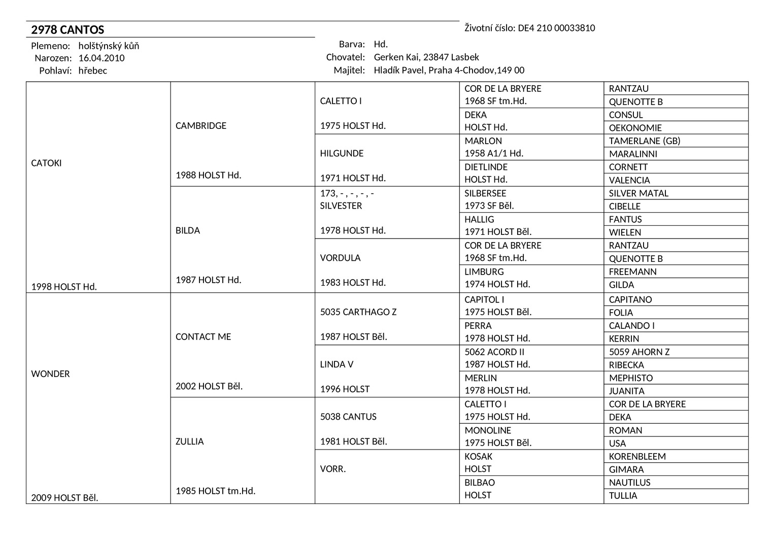 Zapsání v PK: CS – 7,25 b., 50denního testu v Neustadtu, körung hřebců ve Verdenu