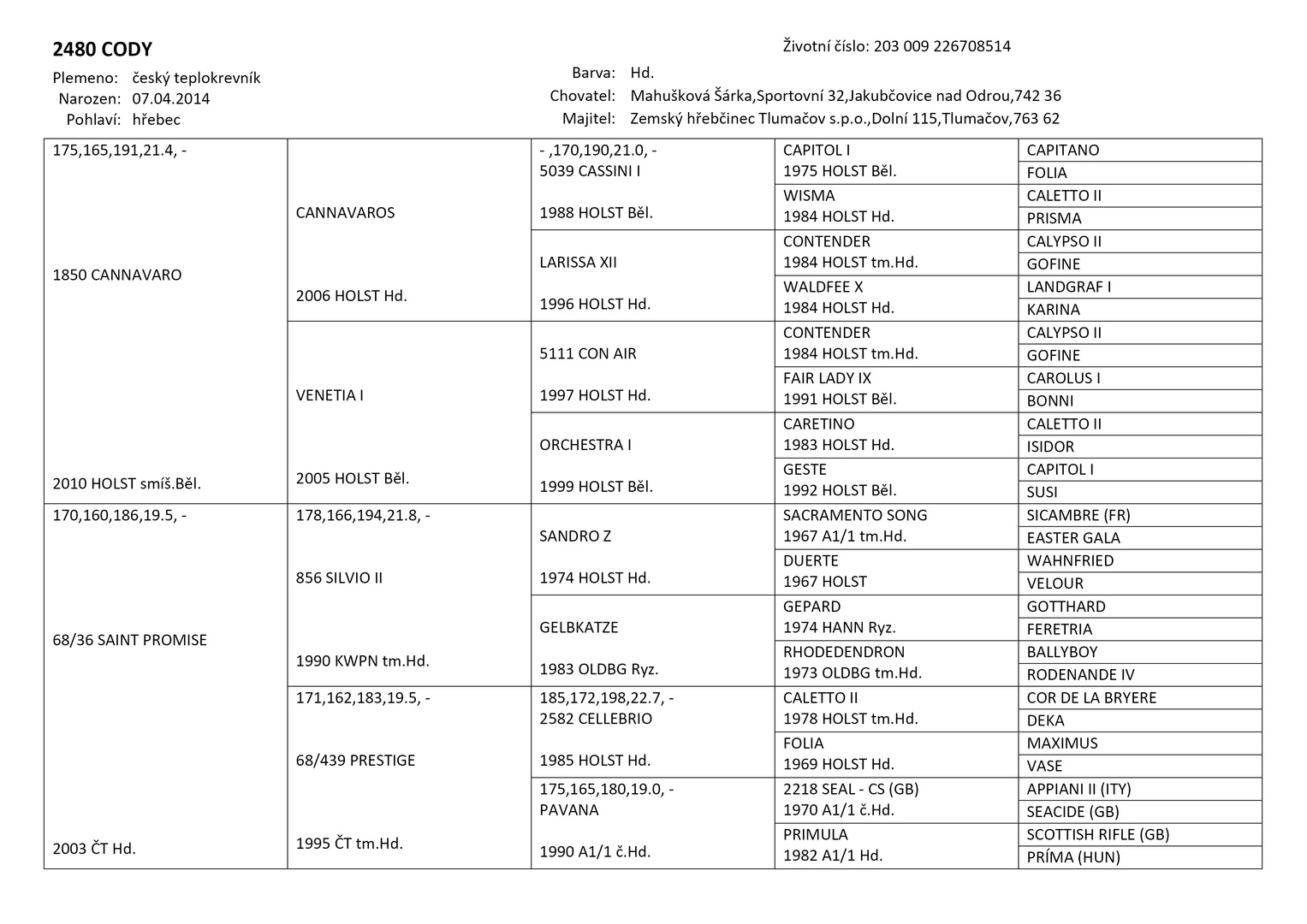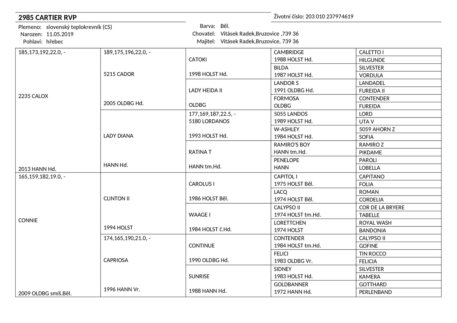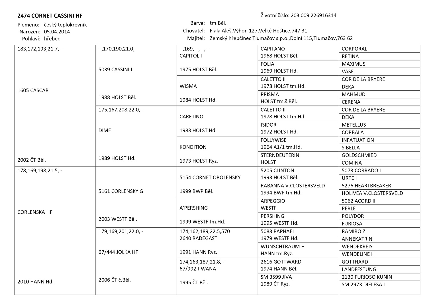 175,165,196,21.0, - Camora 2008 HOLST Ryz. | Cassiano 2001 HOLST Běl. | Cassini I 1988 HOLST Běl. | Capitol I |