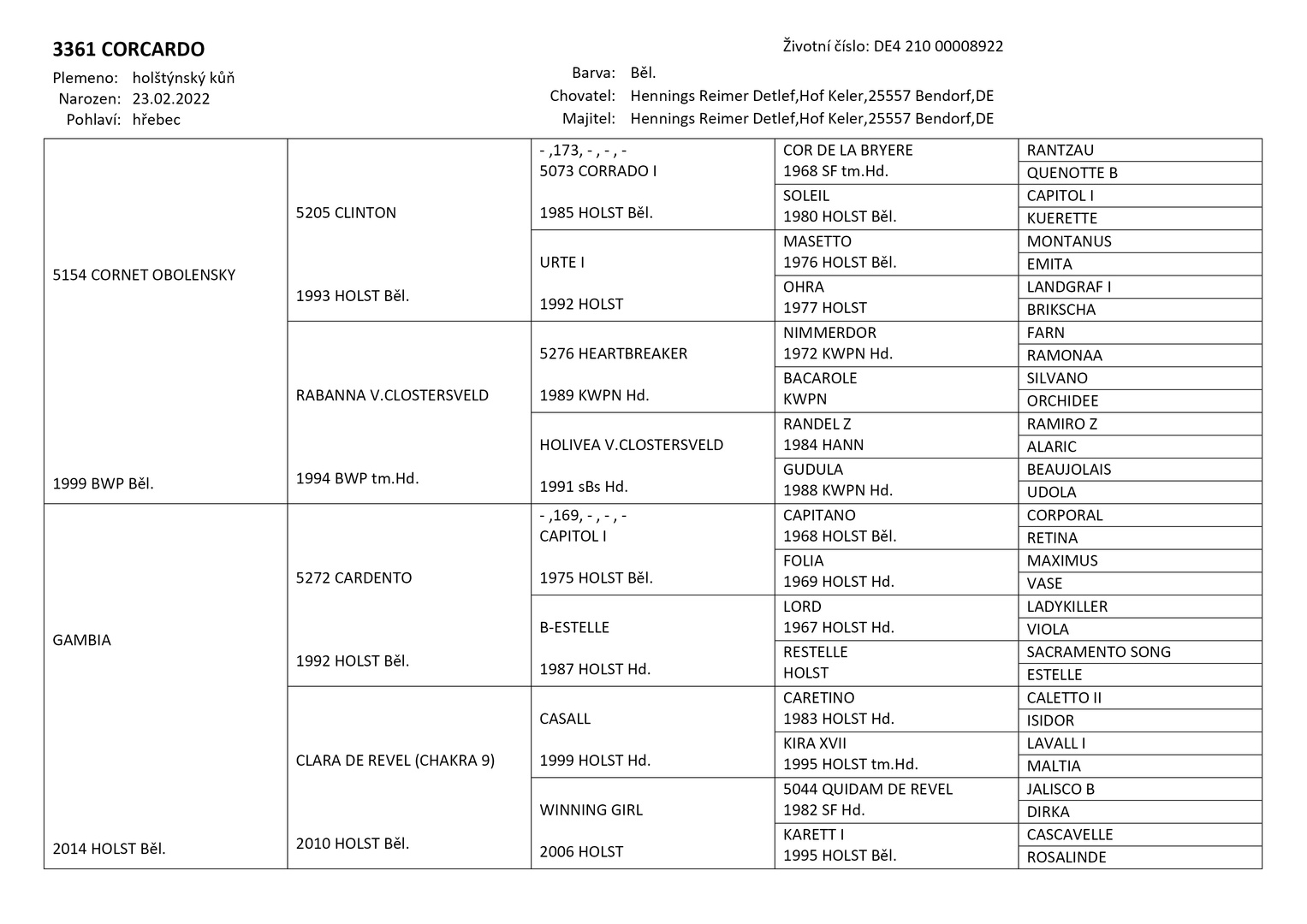 Cerise Z1992 HOLST Běl. | Calando I1974 HOLST Hd. | Cor de la Bryere | |