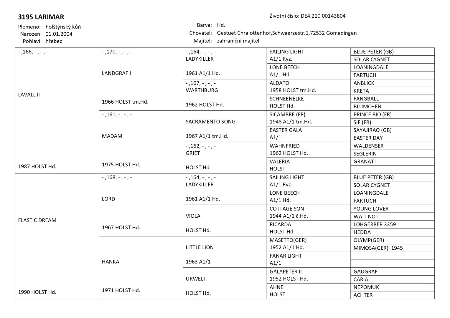 Jarmenja 1994 HOLST Hd. | Lavall II 1987 HOLST Hd. | Landgraf I | |