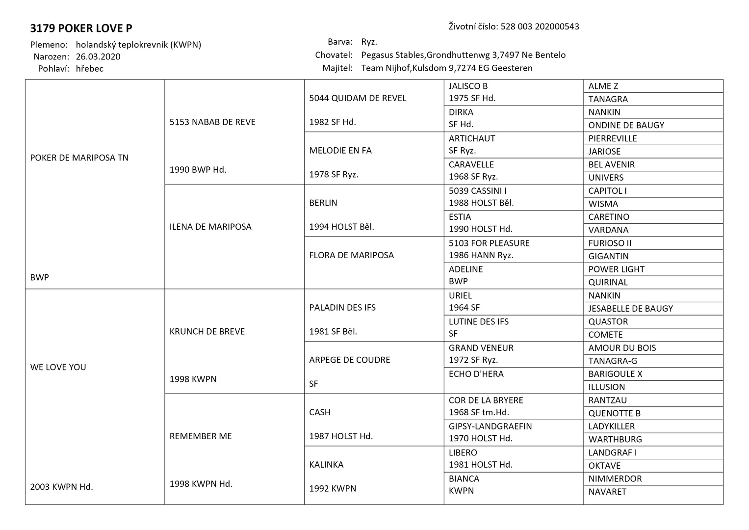 Galante IV 1992 HOLST Ryz. | Constant 1972 HOLST Ryz. | Cor de la Bryere | |